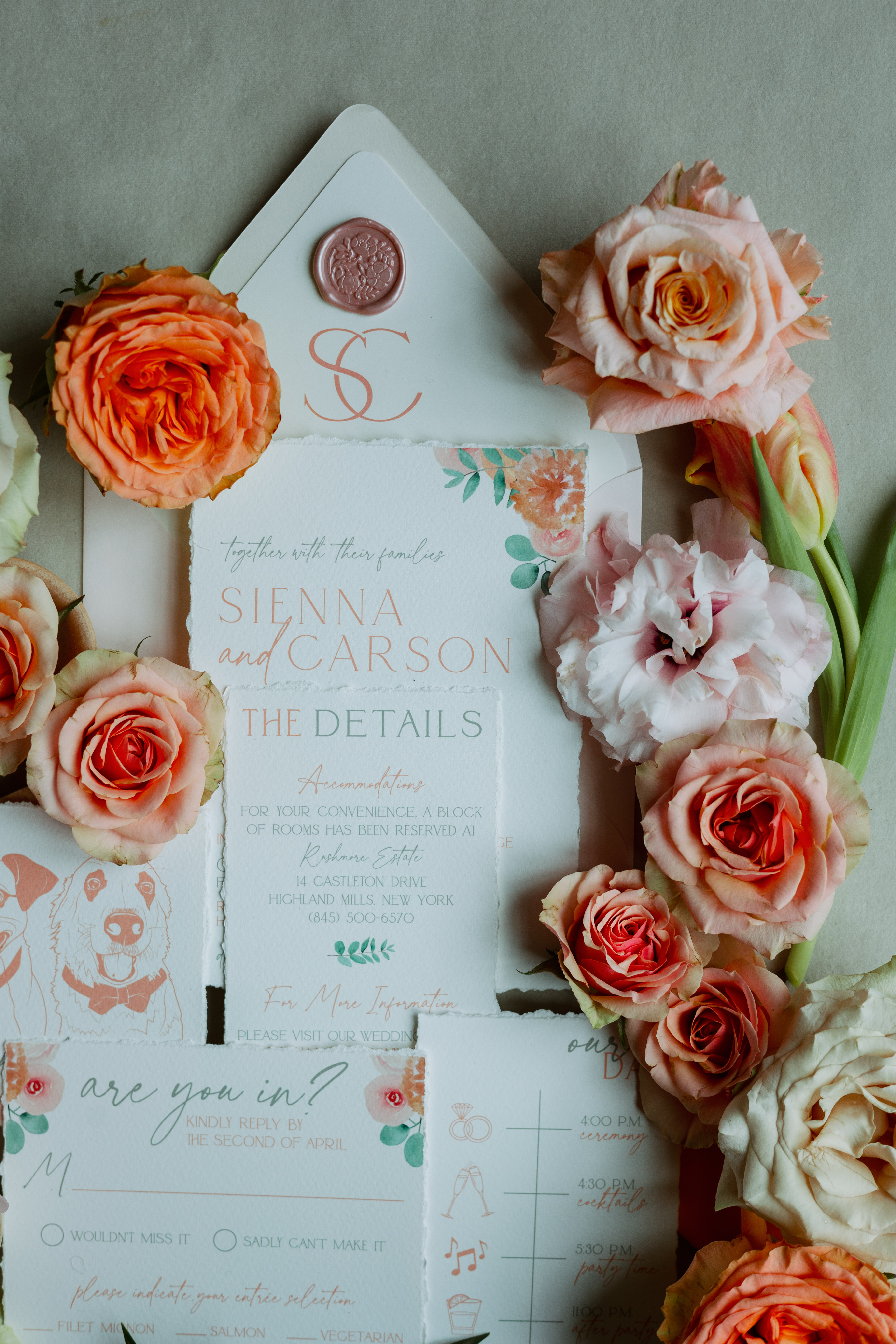As a modern Hudson Valley wedding planner who likes to keep up with the trends, I’m beyond excited to share with you the magic we recently created at the stunning Rushmore Estate in Woodbury, NY. Picture this: a whimsical blend of peaches, pinks, and blushes, all inspired by the 2024 Pantone Color of the Year, Peach Fuzz.